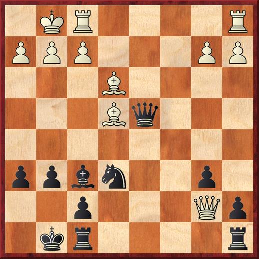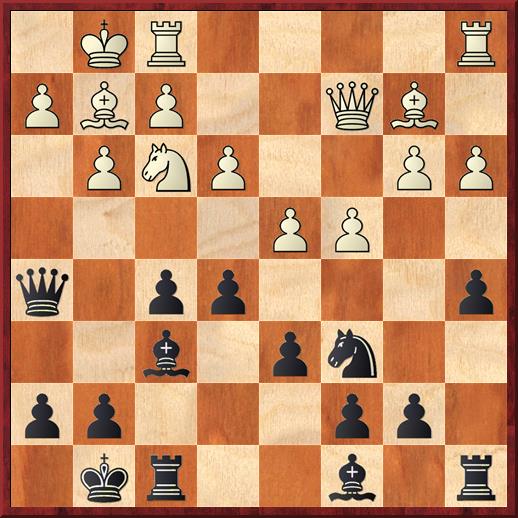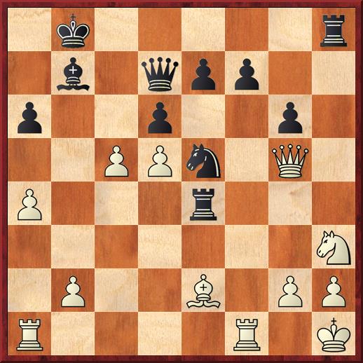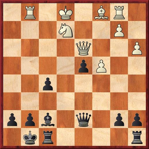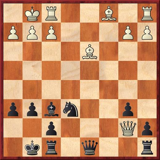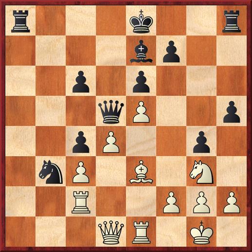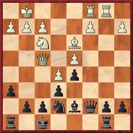 White is better, courtesy of the bishop pair and plays 18 Be4. Black must play actively or he will soon lose. Black plays 18…Qd4.