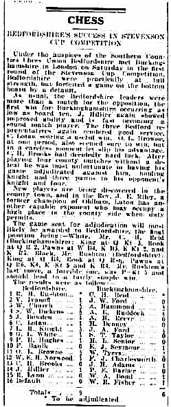 […] I note that the tournament is listed at the 7th Bognor Open and in the zipped file as the Stevenson Memorial. My more senior fellow county players will recognize that as the eponymous R. Stevenson of Kent, since The Stevenson Cup, hosted Bedfordshire a number of times over the years. (see: https://mccreadyandchess.com/2015/07/02/reportage-of-bedford-chess-club-in-the-30s/). […]