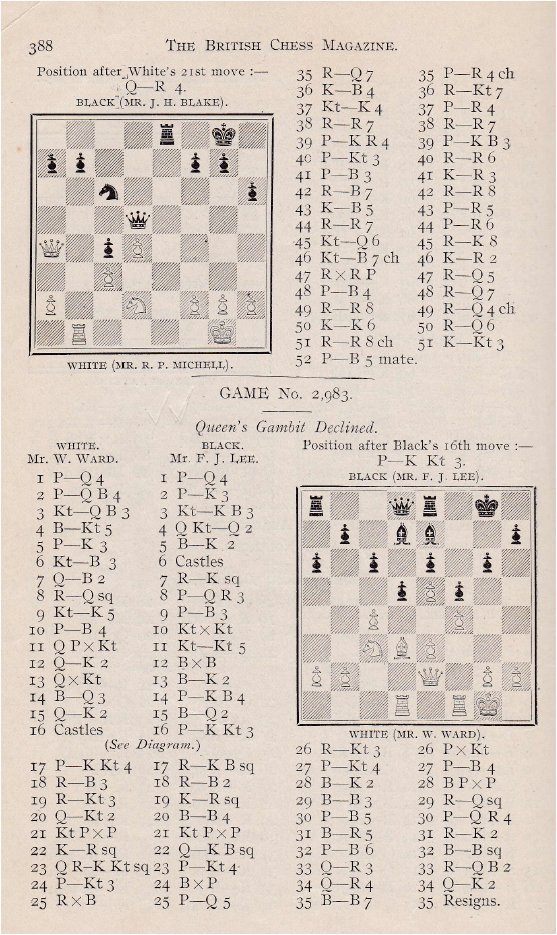 Here is an account from the British Chess Magazine. The games provided are William Ward’s.