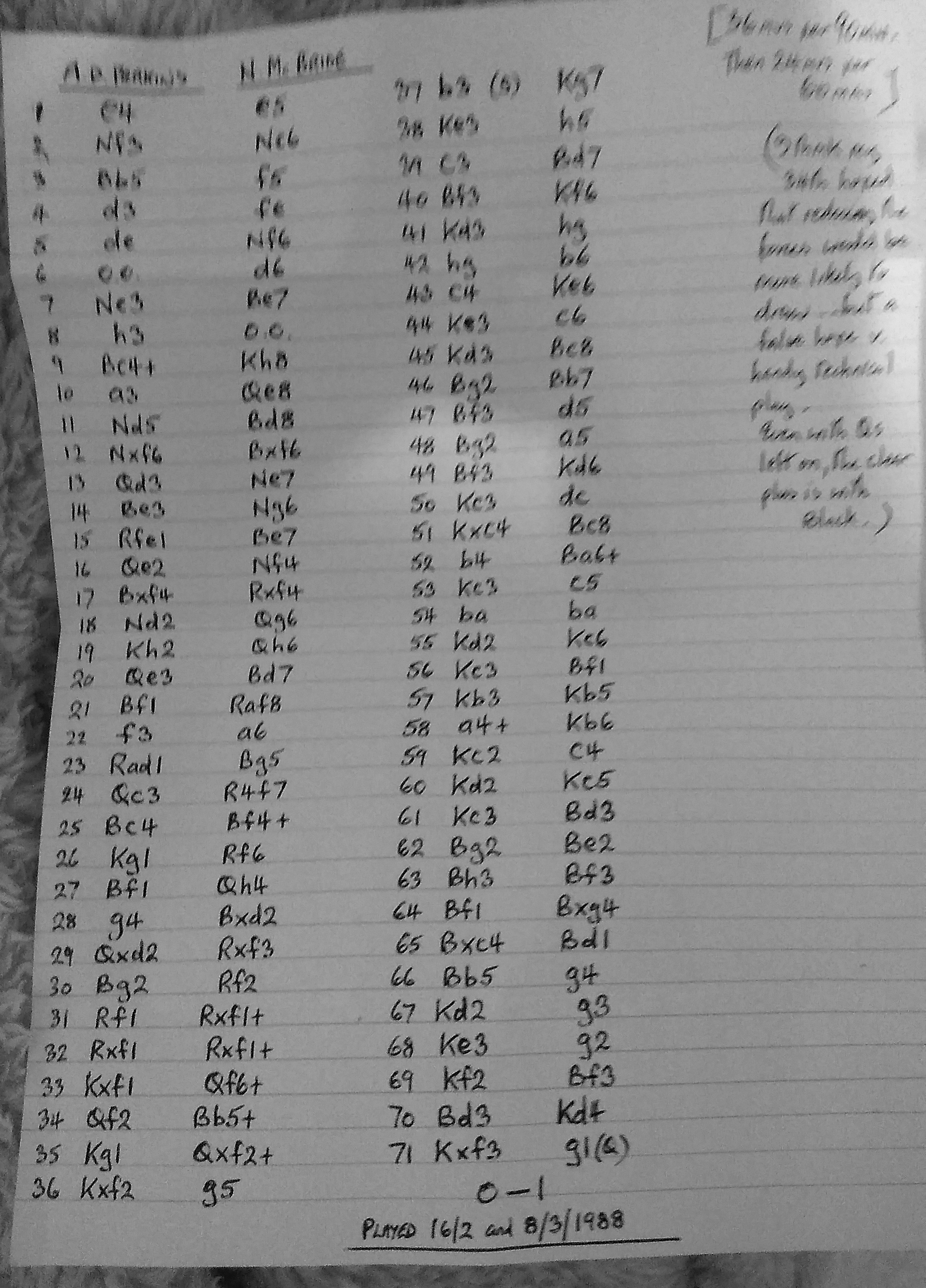 I was there, I played Black, it was a Ruy Lopez, Chigorin variation. I still remember his look at me after 1. e4 e5 2. Nf3 Nc6 occurred, he thought ‘Should I play 3. Bc4 or Bb5’ he played the latter. His book on the Lopez back then was the best book still to this day written on it and btw yes he does have a 100% record against a certain GM names Gary Kasparov…no wonder I lost!!!!