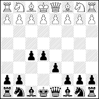 Under starters orders as white it’s 1. e4 hoping for 2. Nc3 and a pawn structure as such: