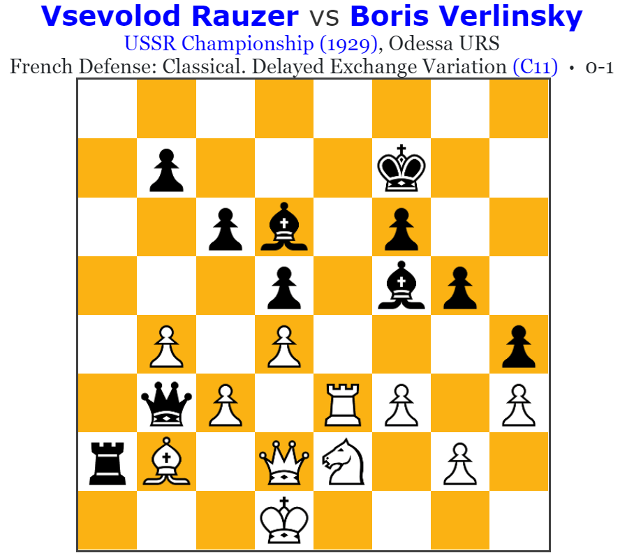As a rule of thumb, the more complex the concepts you grapple with are, the better the player you are. By this I mean when you move away from the material to the abstract, it means the more you are absorbing, very generally speaking. If you never consider control over colour complexes, it’s fair to say you are most likely playing for pleasure than playing to push yourself towards becoming a professional player. Those at the very top are able to win by means of controlling colour complexes and here’s a fine example by the first accredited Soviet Grand Master Verlinsky. Yes of course in retrospect we see Botvinnik as being the first but that wasn’t so. And so here is our old Soviet friend, who played without hearing, doing what he does best, showing why he was indeed world class.
