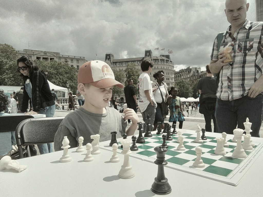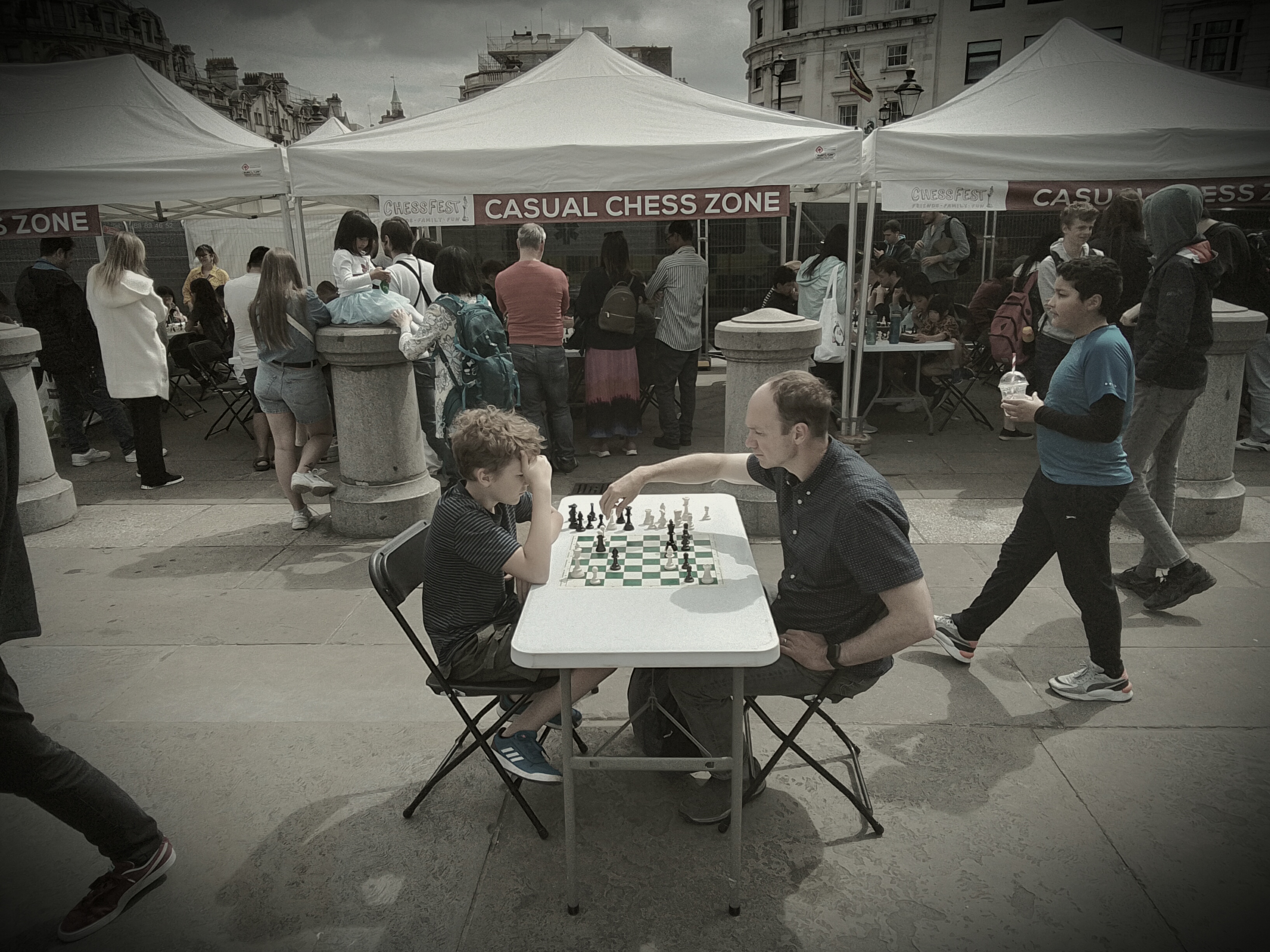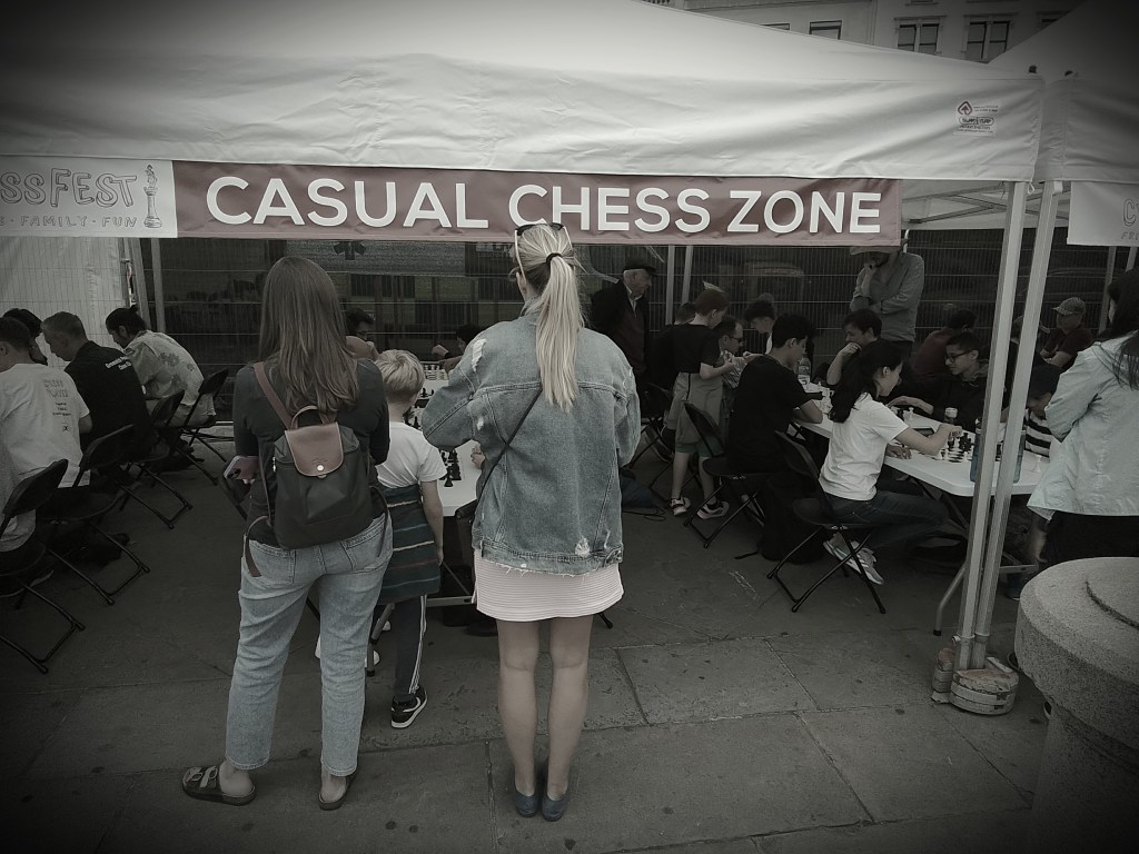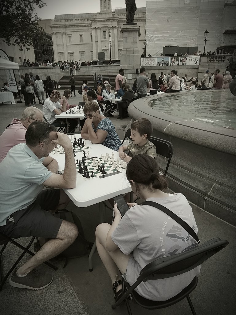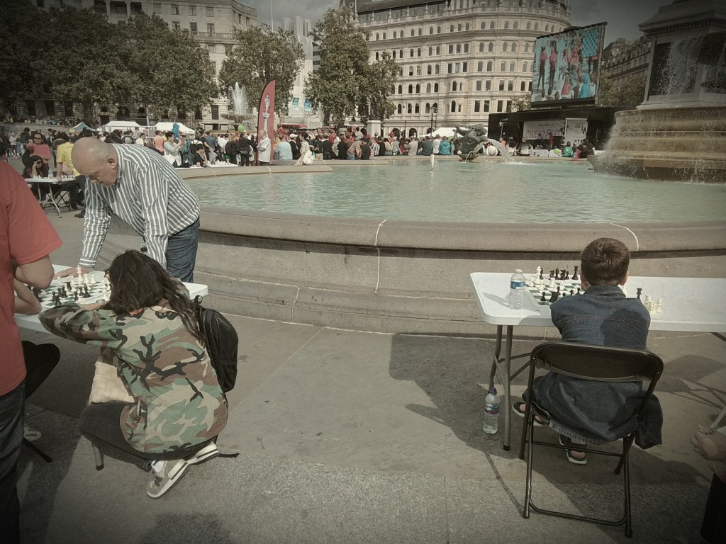 I awoke this Sunday morning unsure of what I would do with the day. For only yesterday I had spent the whole day in ‘the big smoke’ escorting students around. And in case you are not aware, London is always heaving with tourists in the summer. Did I want another day of being swamped by them? As I lay in bed, it did not take more than an hour to decide I wanted to enter the city to watch the annual ChessFest unfold. I wasn’t sore from yesterday’s walk and it beat lazing around all day in bed. So some hours later I readied thyself for the eleven am train, two tickets, and a loss of £22.50… .
