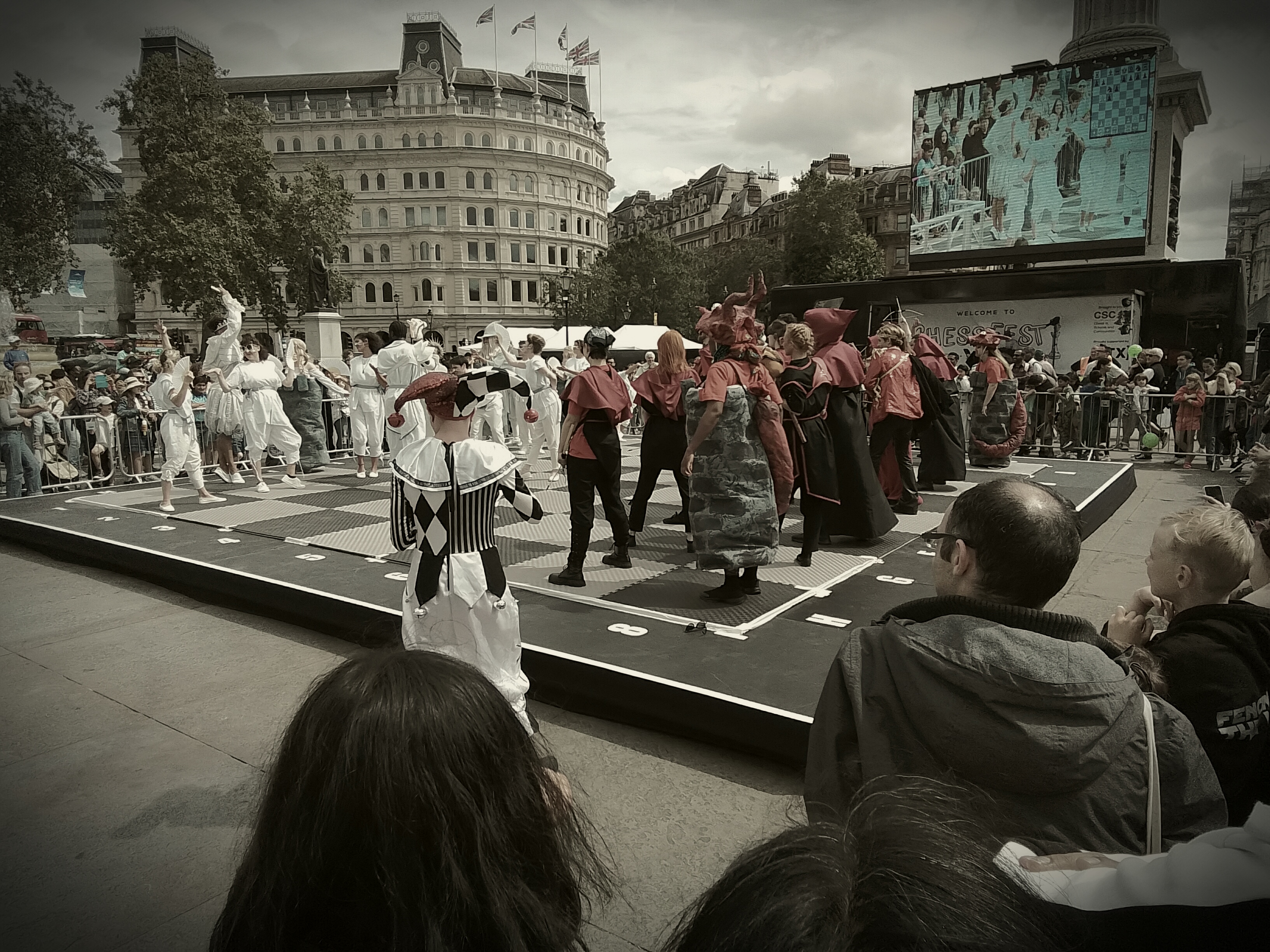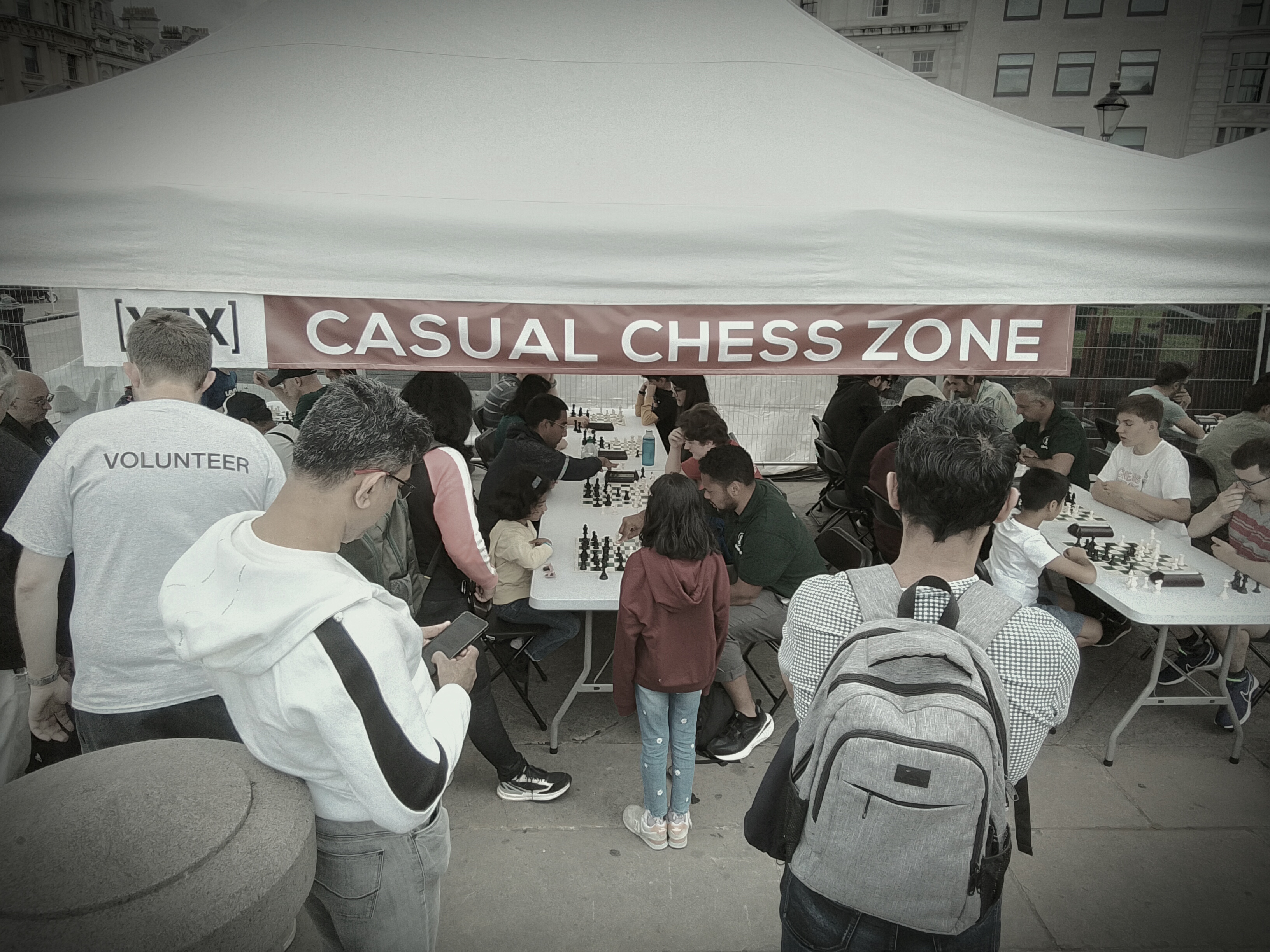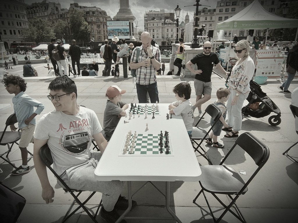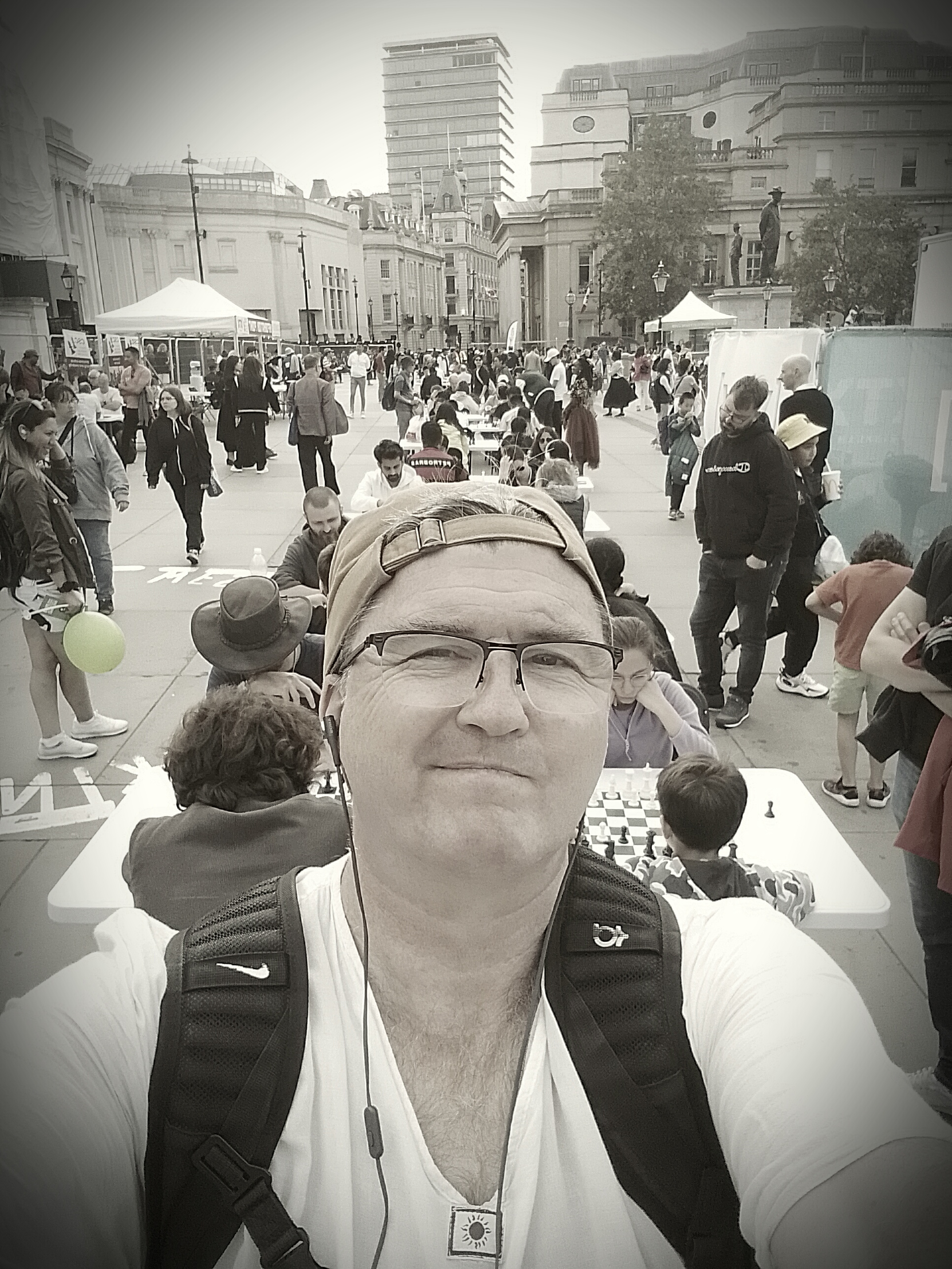I awoke this Sunday morning unsure of what I would do with the day. For only yesterday I had spent the whole day in ‘the big smoke’ escorting students around. And in case you are not aware, London is always heaving with tourists in the summer. Did I want another day of being swamped by them? As I lay in bed, it did not take more than an hour to decide I wanted to enter the city to watch the annual ChessFest unfold. I wasn’t sore from yesterday’s walk and it beat lazing around all day in bed. So some hours later I readied thyself for the eleven am train, two tickets, and a loss of £22.50… .