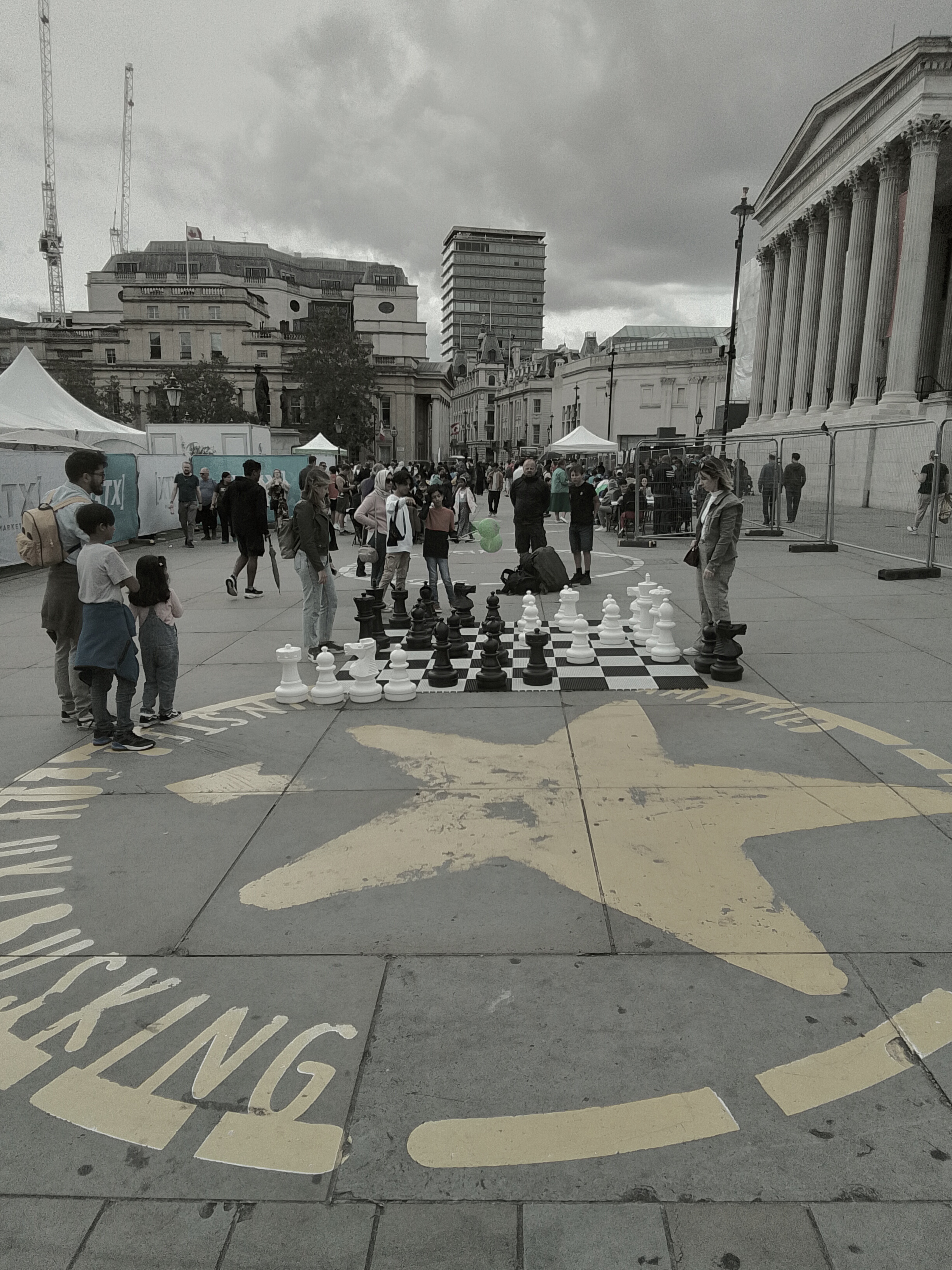 The Chessfest at Trafalgar Square was in full swing when I arrived. But something seemed so wrong from the get go. How could it be so busy so early in the day? Were who I saw playing chess really chess players or just tourists in the vicinity at the current time? But much more importantly, how was I to be? Why exactly was I there? Yes I had concerns that the event would not live up to its billing but it wasn’t only about the chess. I also had Ze National Gallery within reach, and there was Ze Men’s Wimbledon Final to watch on my tablet too. Thought was required on how to triangulate those and squeeze them all in side-by-side so that they didn’t overlap… .