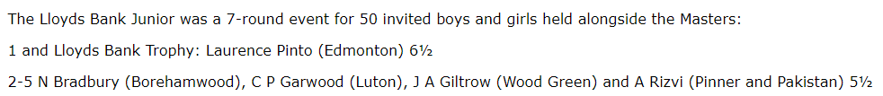 79th Colin. P. Garwood of Dunstabubble (No FIDE rating, est. 2200 classified as a junior)