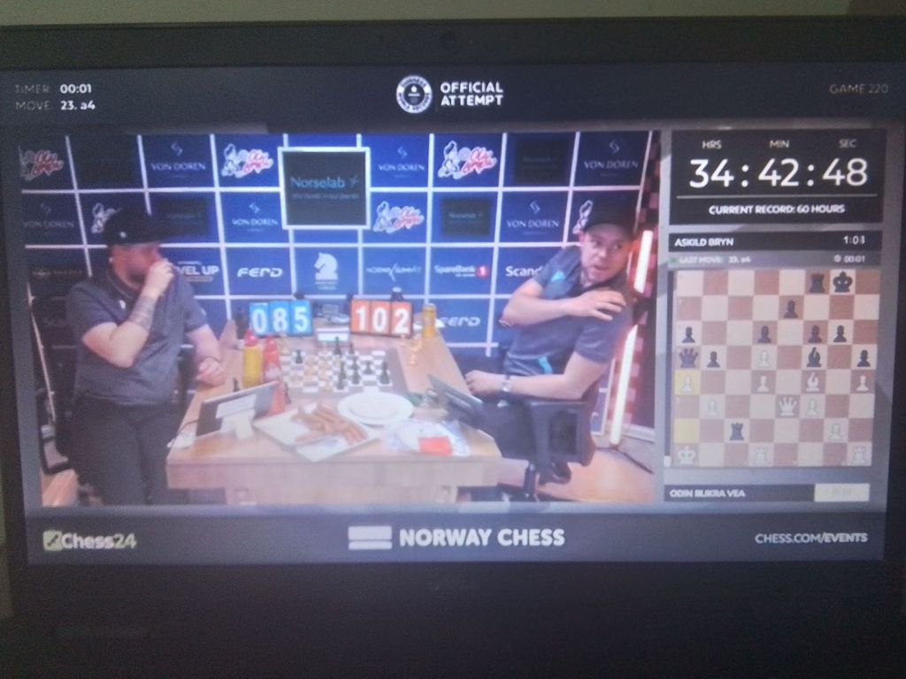 In the current Norway Chess tournament, two friends are trying to break the world record of 60 hours of non-stop chess. Rather them than me.