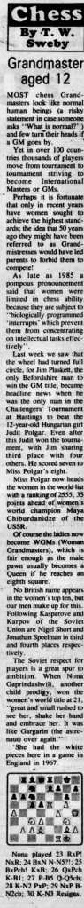 Former county team mate Kevin Williamson handed this to me, a draw from the clutches of those scowling winds of Winter, way back in 1992. I can see why I gave up chess 5 years later. Puny little attack that was going nowhere in an opening I was uncritical of. Thankfully I have no recollection of this particular game, but can account for why I played that way at that particular stage of my life… .