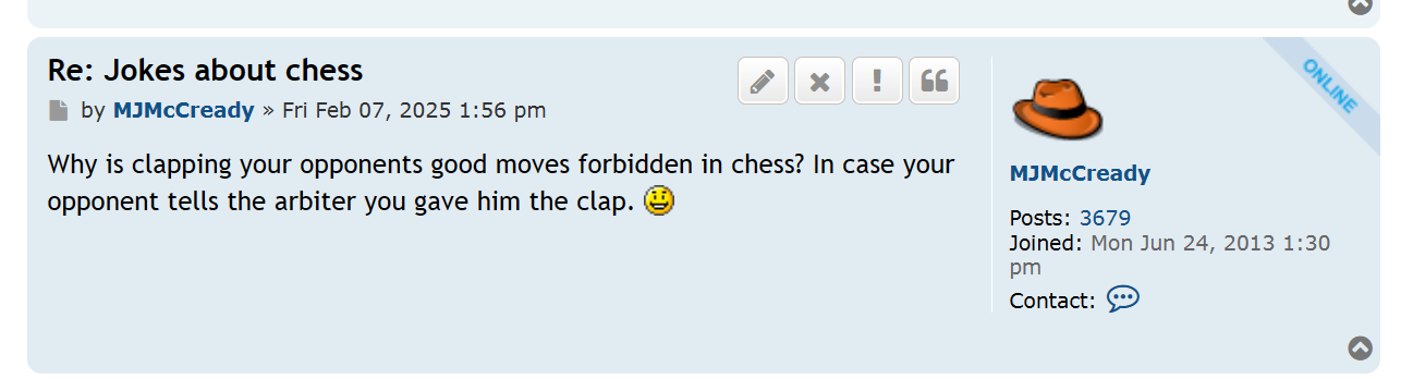Chess is taken far too seriously, lacks humour and is overtly conservative, right? Just say yes whether you agree or not. There are no good jokes in chess.