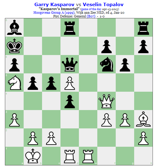 A pamphlet was written about this game due to the attention it attracted. If you look at the position below, how well could you calculate the win ahead from the move played? Assuming of course, the sacrifice is accepted, which it doesn’t have to be.