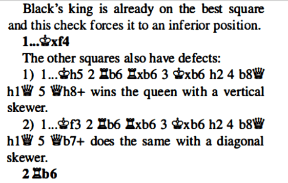White is able to win this but there is only one way to do it, via the intermediary check Rg6! As the analysis shows below, black is compelled to capture on f4 but a pawn race will soon ensue, which allows white to pick up a valuable tempo by queening his pawn with check. To me it doesn’t look like white can save himself. In endgames, where lines of calculation ealongate, I wouldn’t see the significance of the intermiediary check. Would you?