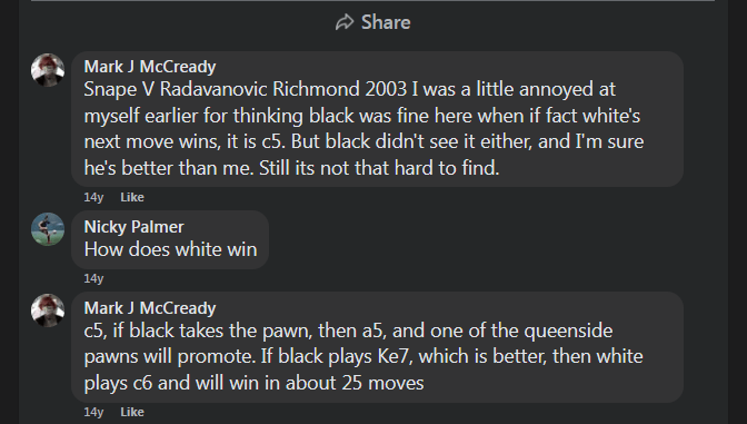 From fb. Presumably I learnt the concept of the square after I posted this as the solution seems rather obvious now. Endgame study has sunk in to some degree then.