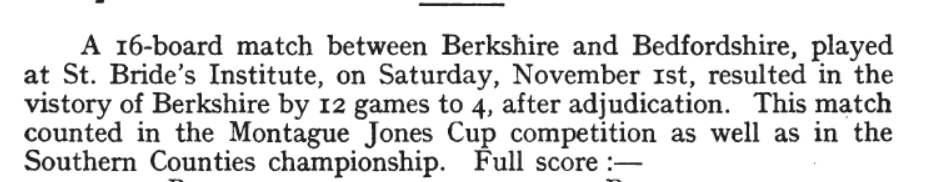 - History of Bedfordshire Chess from 1900-1920