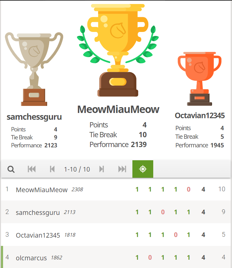 Whatever the case may be, the first in a series of tournaments went down well. We had 10 participants and some old friends were there. I managed to come joint first with 4/5 but board count put me in 4th overall as my loss came earlier than the losses by those also joint first.
