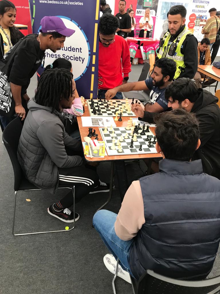 The University of Bedfordshire/Luton chess club recently attended the freshers fair in the student union at the university main campus in a bid to attract new members. There are pictures below where lifelong club members put their wits against the freshers!
