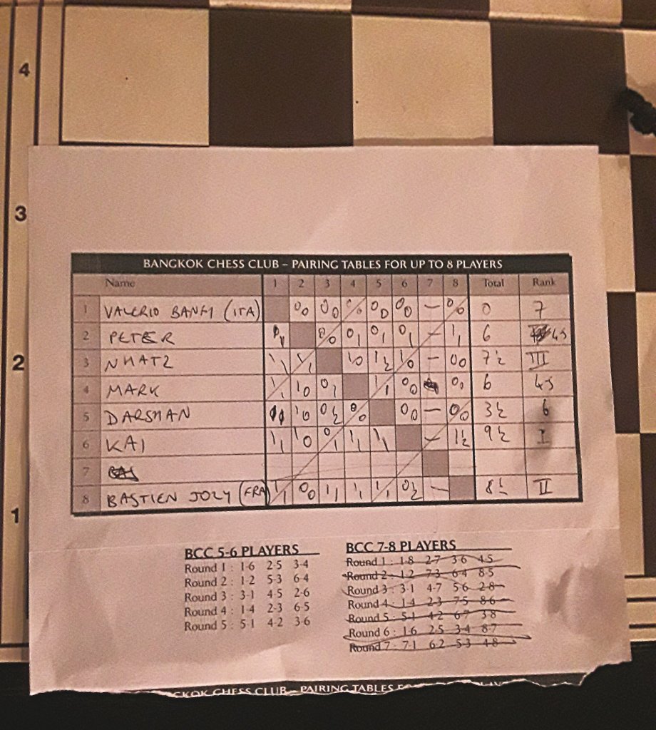 Been back in Thailand for over three months now I have. Meet every Friday upstairs in The Royal Oak pub, Sukhumvit 33/1 Bangkok Chess Club does.