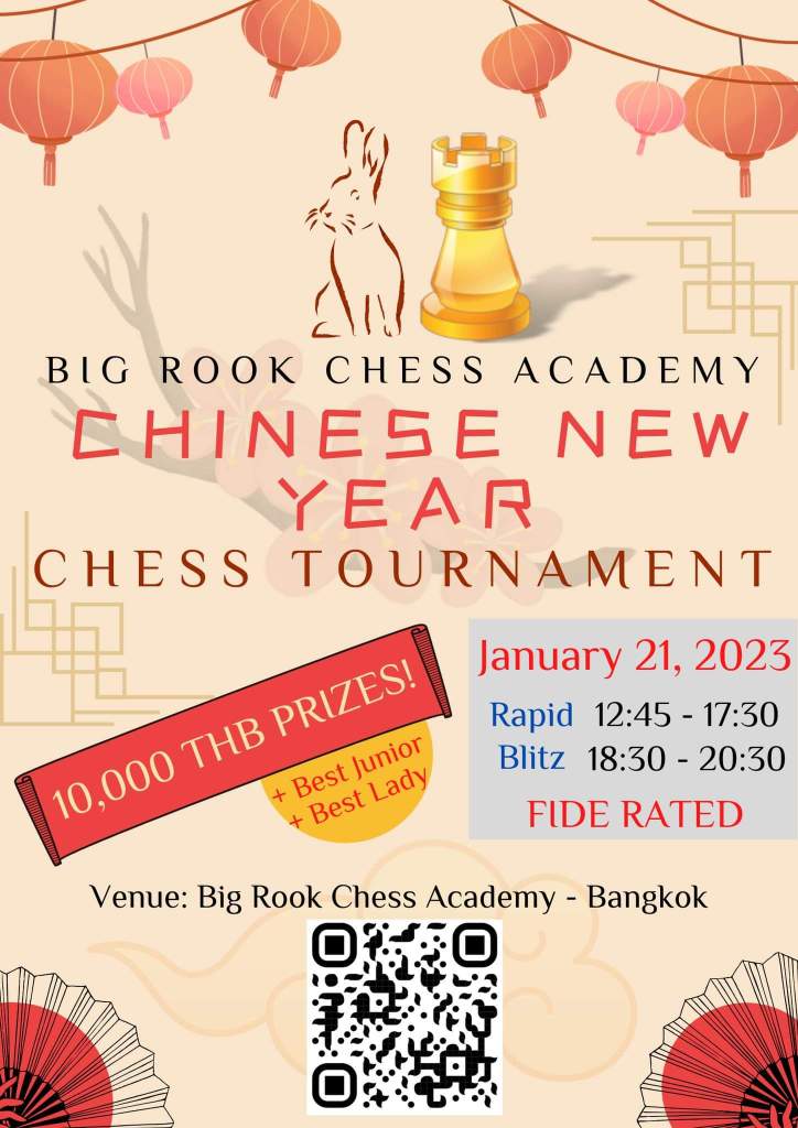 Next Friday I will go to play in a blitz tournament at Bangkok Chess Club. Next Saturday I will play in a Rapid Tournament. Next Sunday I will play in another rapid tournament in the city. Triple whammy in play.