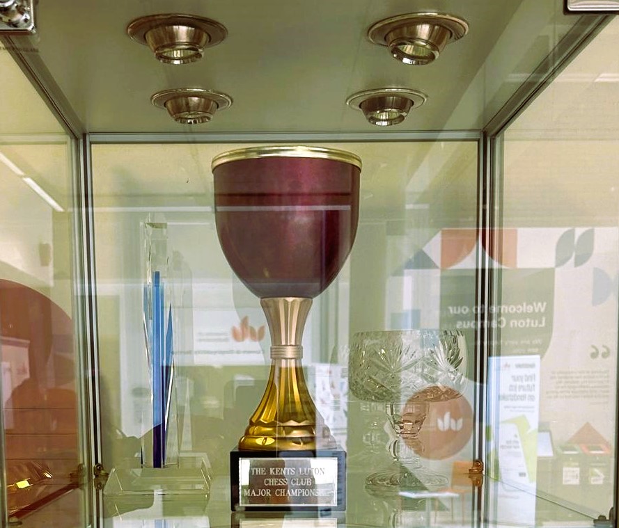 The Luton Chess Club trophy has reappeared on show at the club courtesy of long standing member, and former champion, Peter Montgomery.