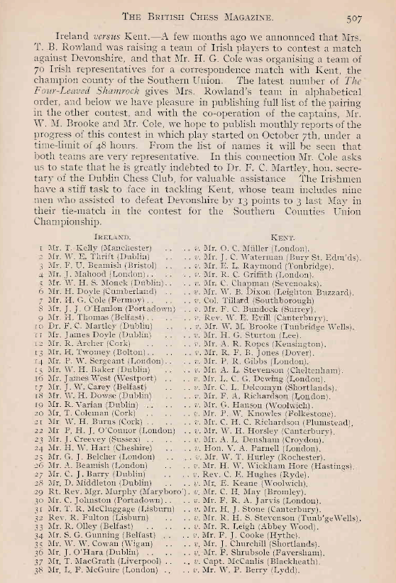 Things have moved on from 1908 but on this sceptred isle an undying love of chess beats with the hearts and minds of men who play on, and on. One of whom is myself. And the consequence of which is? I had better continue getting my act together because pride and honour are at stake. Details of the invite can be found here: https://www.chess.com/news/view/north-v-south-match-5-september-2020