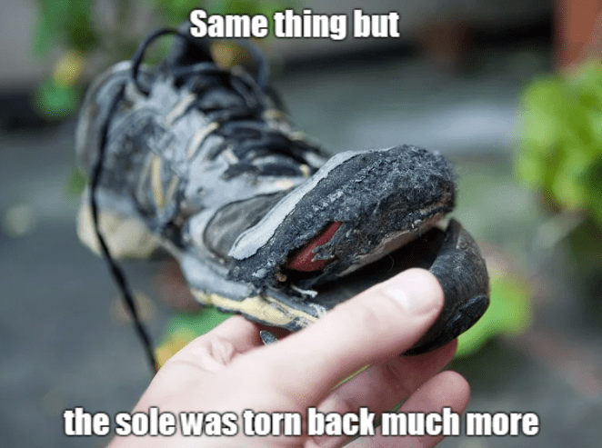 I had to use an elastic band to hold it together, I mean the trainer on my right foot, but often it snapped and the sole just flapped as I trudged through the snow on the pavement and slipped on the ice crossing roads. Always I had to stop somewhere and sit on a low garden wall where the stone was bare and snow left untouched. It made my bottom wet as I bent down to dislodge the snow in my trainer with my index finger. To make matters worse, I only had rechargeable batteries in my walkman and they died in no time at all.2