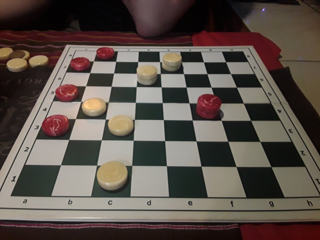My opponent, Dennis Pawlek is an IM at draughts and the one able to provide documentation of when I played for England. As you can see, he is in some trouble in this game played on October 3rd 2019.